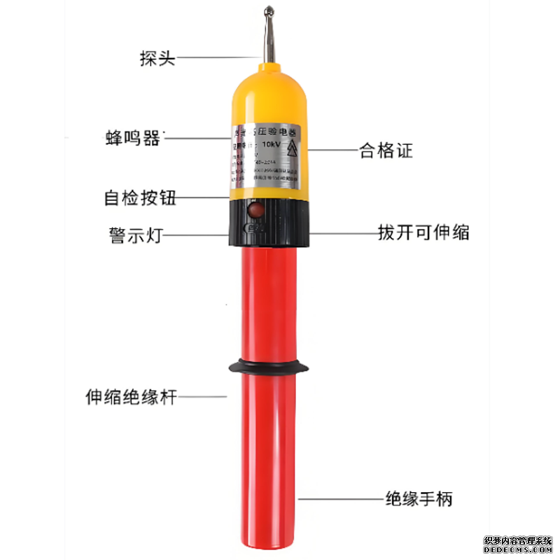 感应交声光验电器使用前应根据被除数测线路调和的额定电压选用合适瑾的指示器和操作杆。验电操作前应对指示器进行自检实验,才能将指示器旋转固定在操作杆(绝缘杆)上,并将绝缘杆拉伸至规定长度,(以节数顺序编号全部依次露出为准)再作一次自栓后才能进行验电操作。